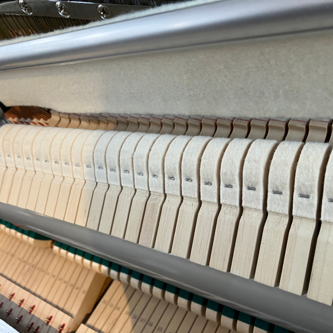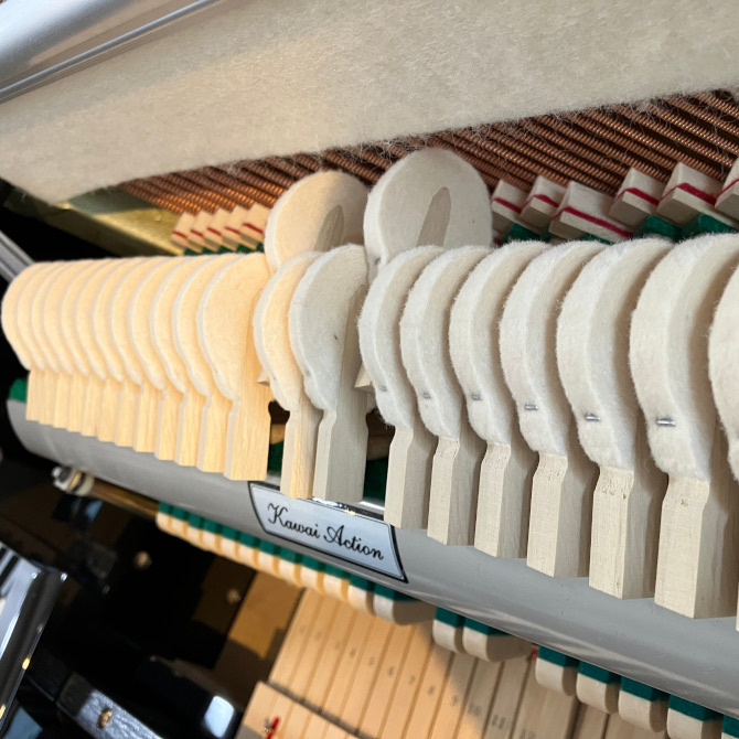 ハンマーが弦を叩いて響板に伝わって聞こえてくる音を直接演奏者の耳に届けやすい仕組みになっていますので、どんな打鍵でどのような音色になるのか理解しやすく練習の質もあがります。