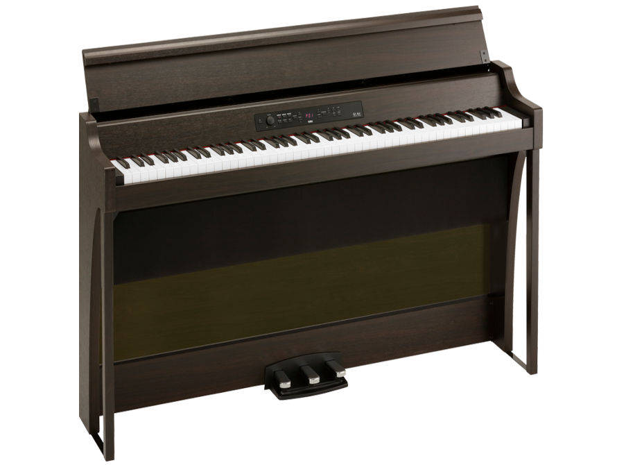 格調高くエレガントなデザイン、最新モデルには背板を装備。 伝統的なピアノのフォルムに敬意を表しつつ、そこに新たなエッセンスを加えた、デジタル・ピアノとして他にないデザインのエレガントなキャビネット。柔らかな曲線が特徴的な脚部も、G1のモダンなスタイルを強く印象づけます。