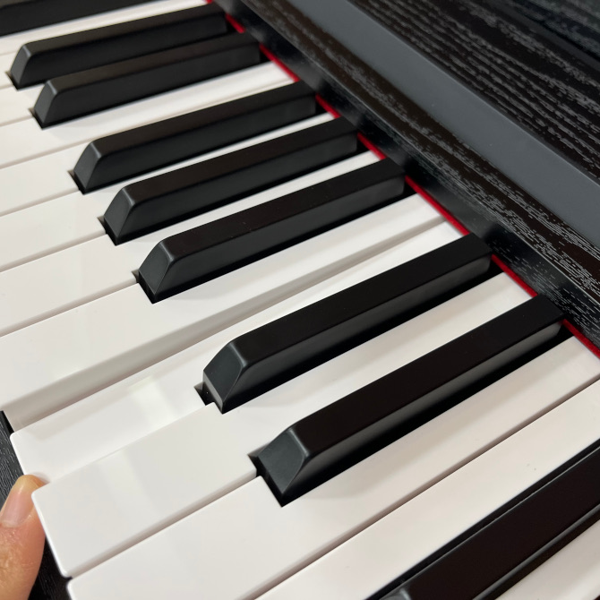 グランド・ピアノと同様に低音部では重く、高音部にいくほど軽くなるタッチを再現したリアル・ウェイテッド・ハンマー・アクション3(RH3)鍵盤を採用。高い連打性能で、早いパッセージでも演奏者の表現力を損なうことなく音の強弱まで再現します。この鍵盤は環境にも配慮しており、鍵盤のハンマー部に鉛を使用していません。また、タッチの強さによって5段階の音の出方(軽め、標準、重め、安定、一定)を設定できるキー・タッチ・コントロールに対応し、自分のタッチに合わせて演奏を楽しめます。